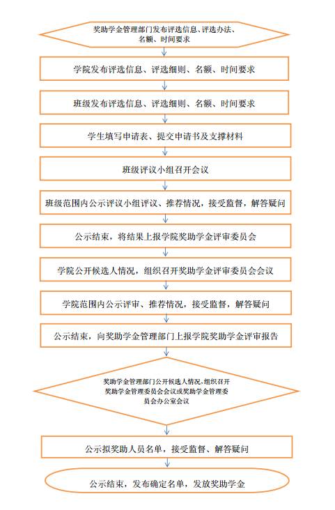 首页 > 服务指南 > 正文 奖助学金评选程序流程图 2016-04-10 06:23 文字: 责任编辑:郭晓飞 上一篇:办理国家开发银行生源地信用助学贷款首贷流程图 下一篇:家庭经济困难学生认定和建档工作流程图
